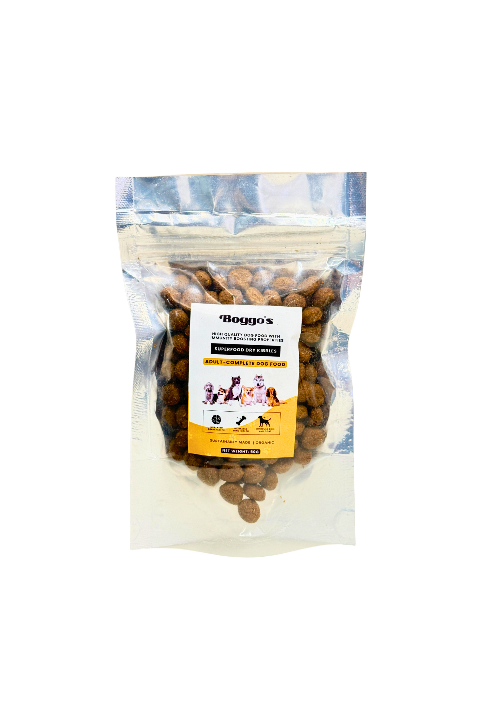 Boggos Superfood Kibble is the complete and balanced diet your adult dog needs to thrive. It's delicious, nutritious, and good for them – what more could you ask for? Make mealtime a celebration with Boggos – the easy way to supercharge your dog's health!